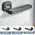 Space-saving folding clothes hanger with a strong suction cup design, made of durable aluminum for indoor or balcony use, retractable and no-punch installation, perfect for drying clothes efficiently without damaging walls.